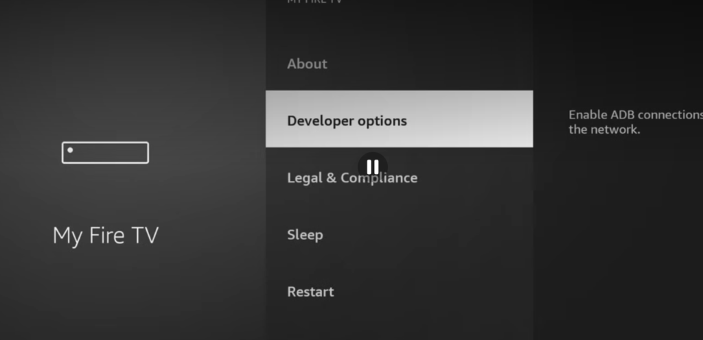 Enable Developer Options Go to Settings → My Fire TV → About.