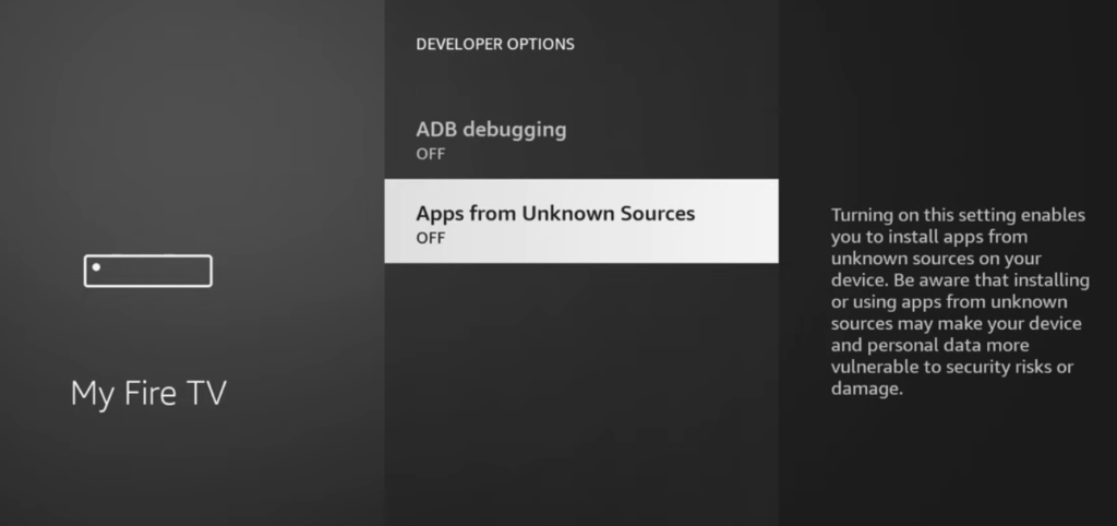 Enable Unknown Sources Go back to My Fire TV → Developer Options.